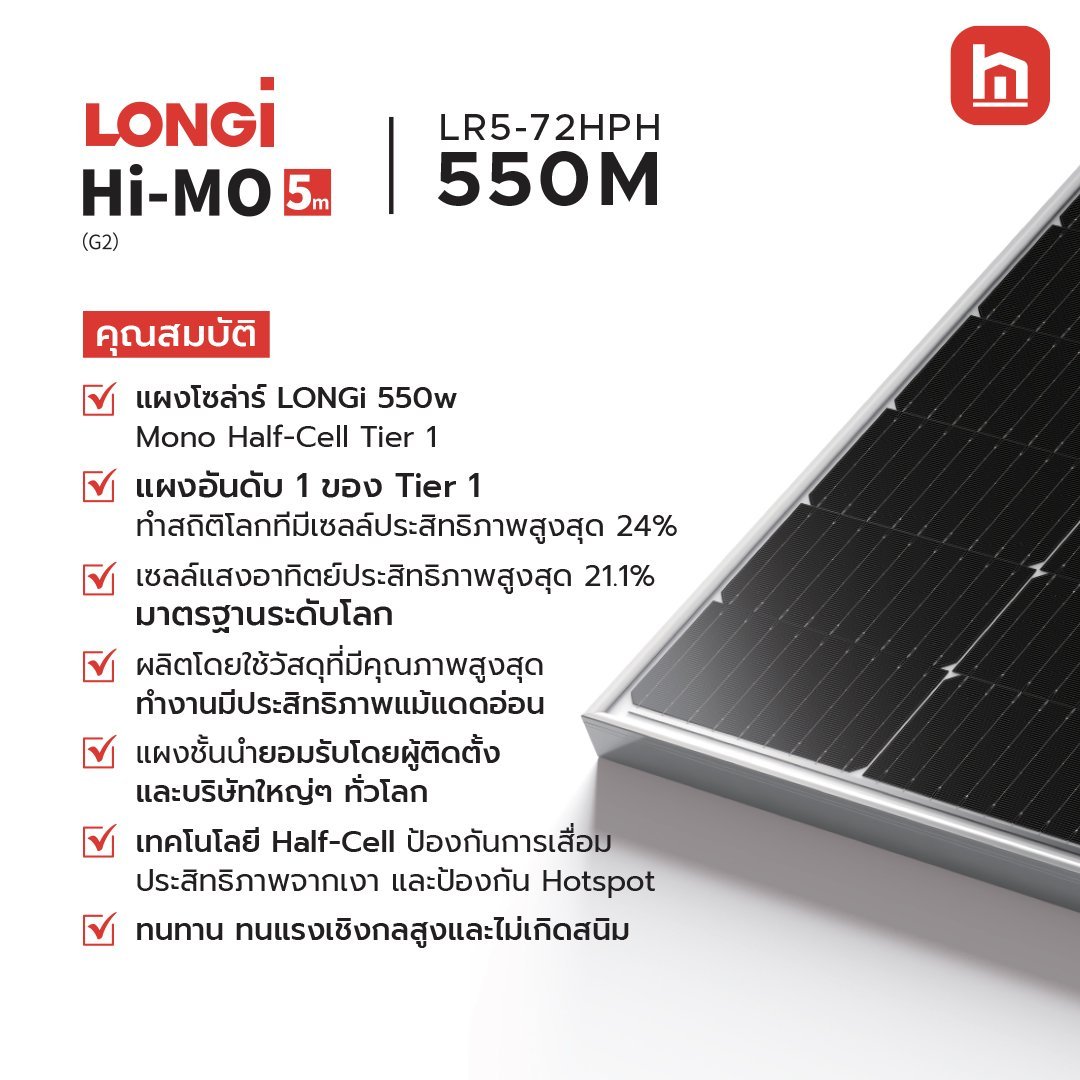 แผงโซล่าร์เซลล์ LONGI ชนิด MONO Half-cut Cell ขนาด 580W